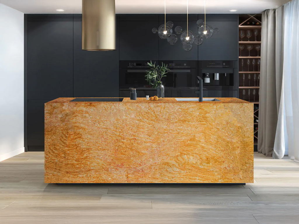 Belvedere quartzite is exceptionally resistant to scratches, abrasions and chemicals.