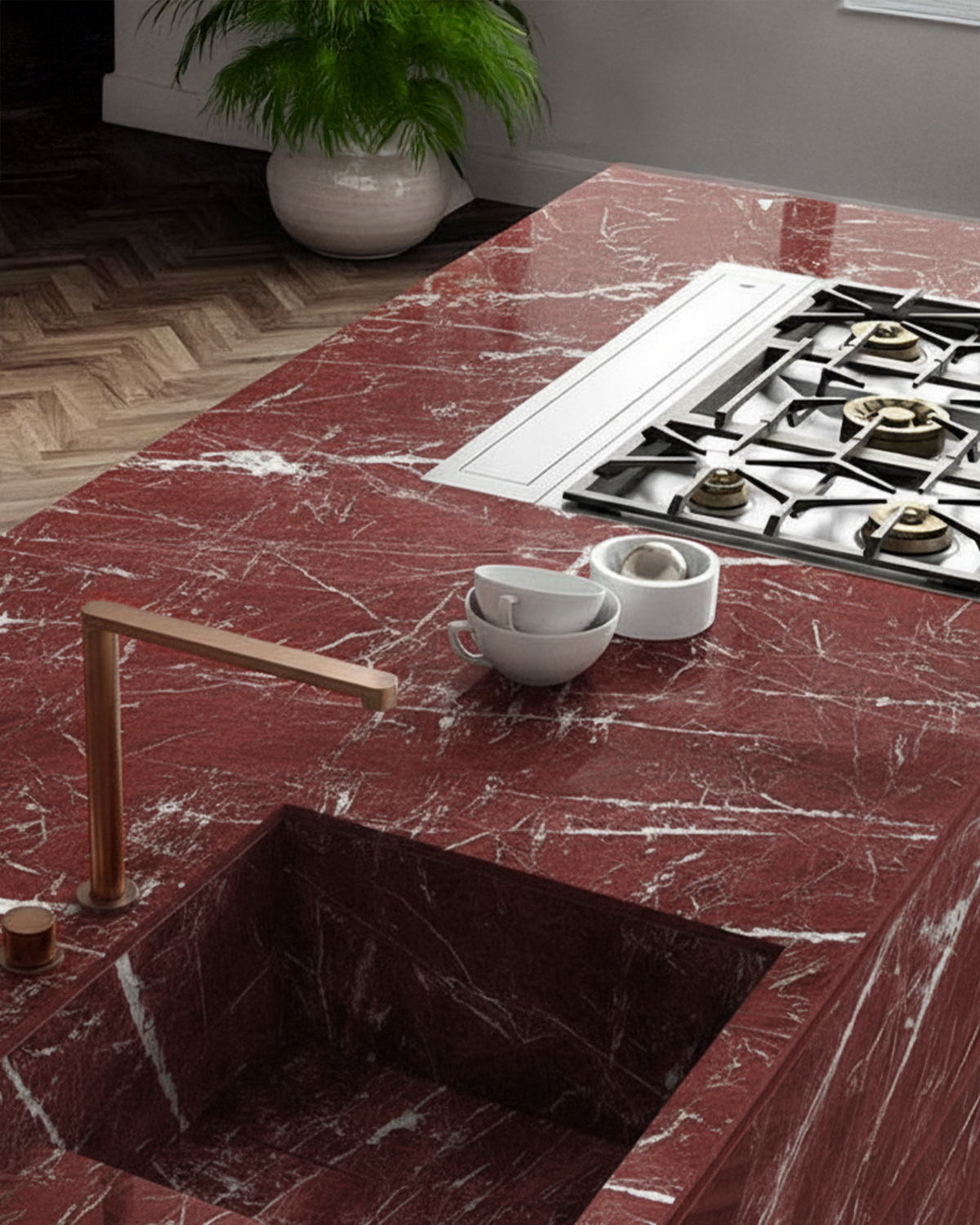 Rouge De Roi marble is a statement of character: direct, magnetic, unforgettable.