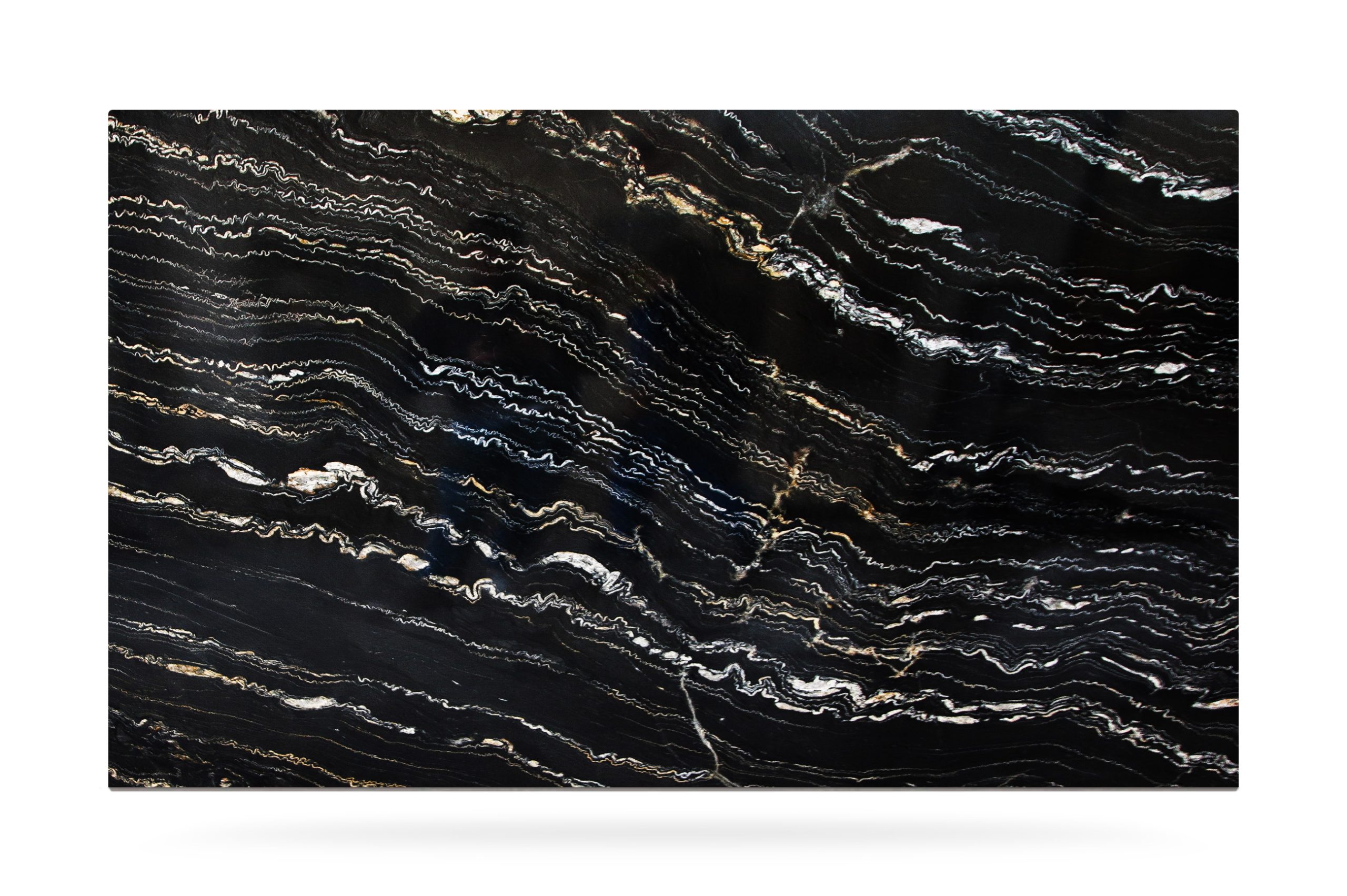Fine-grained quartzite from South Africa. Its intense black background is enriched by irregular white-golden veins that cross the slabs, giving professionals in the sector the opportunity to create wonderful open-book compositions. This material is among the hardest and most resistant quartzites, used for the creation of wall coverings, internal floors but also external design projects and decorations.