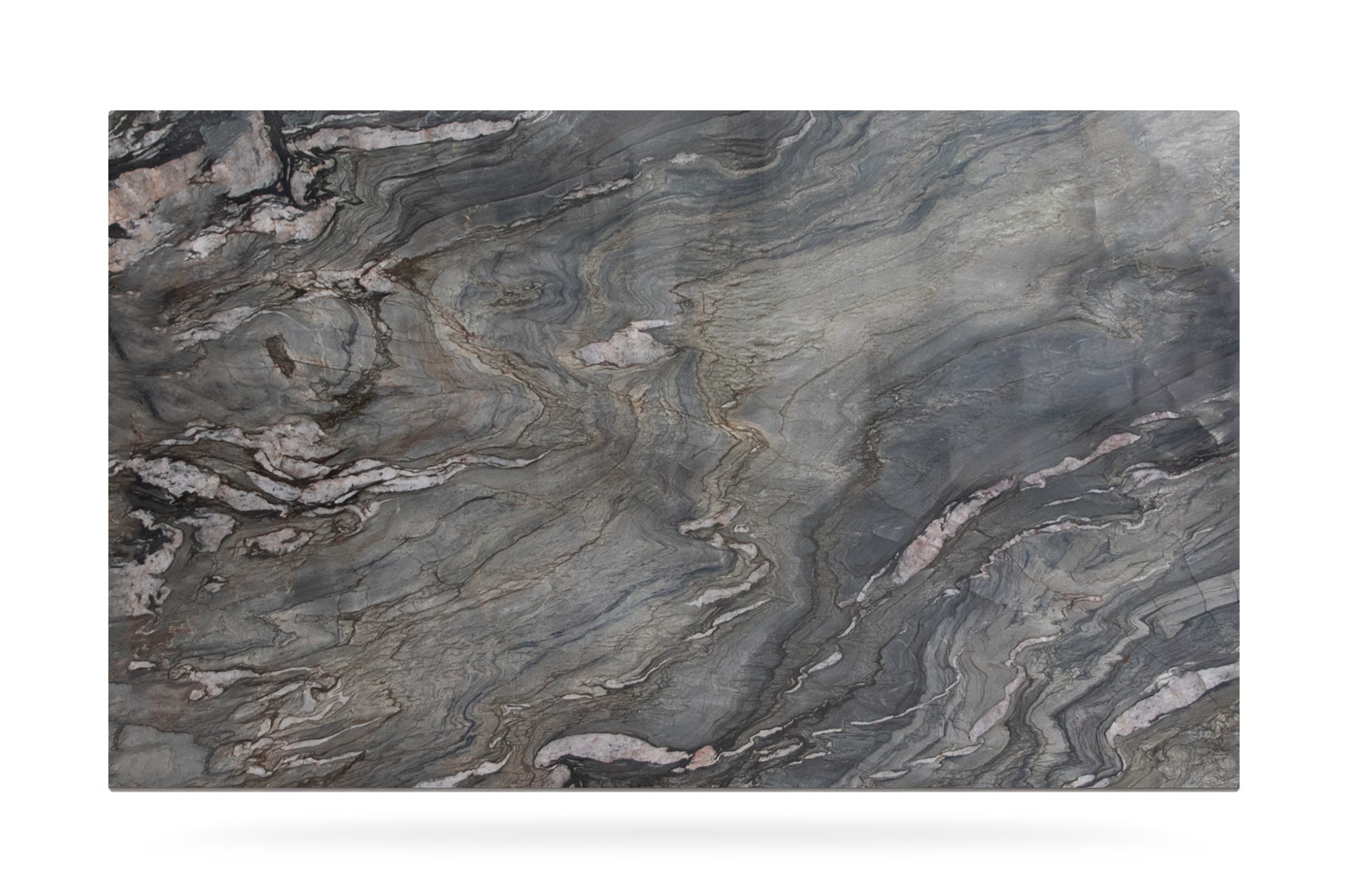 Beautiful exotic quartzite from brazil, with a blue background and powerful white, grey and sometimes light brown veins. Highly appreciated for its particular structure, available in any finishing, this quartzite is perfectly suitable for any type of indoor and outdoor decoration. Ideal for flooring, countertops, vanities and cladding.